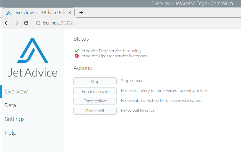 The JetAdvice Updater service checks periodically whether there are any new updates for the JetAdvice Edge and Edge UI services.